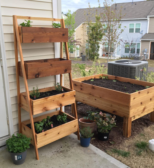 3-laags houten verhoogd tuinbed met wielen, latwerk, opbergruimte achter, gemakkelijk verplaatsbaar voor bloemen, kruiden, natuurlijk