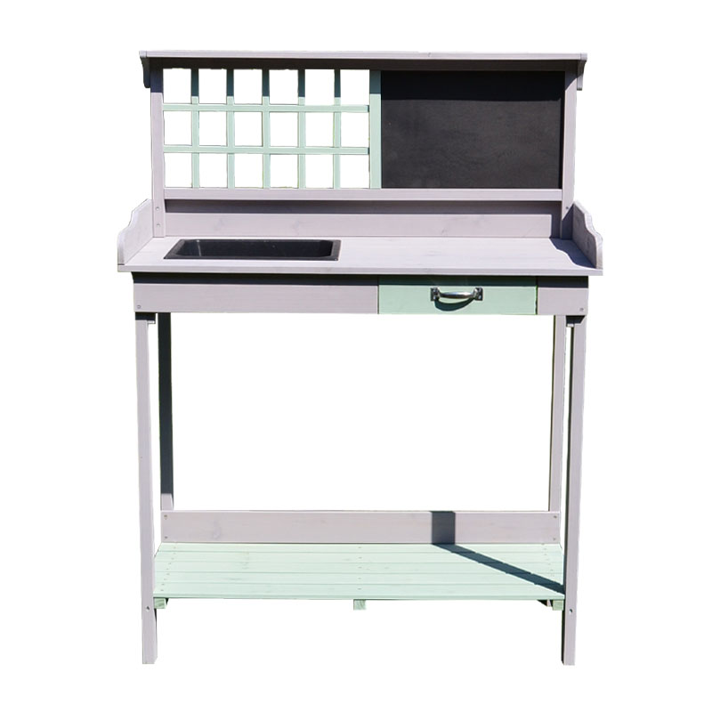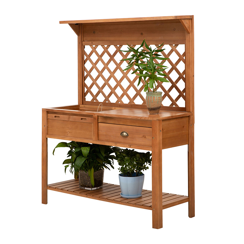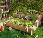 3-laags houten verhoogd tuinbed met wielen, latwerk, opbergruimte achter, gemakkelijk verplaatsbaar voor bloemen, kruiden, natuurlijk